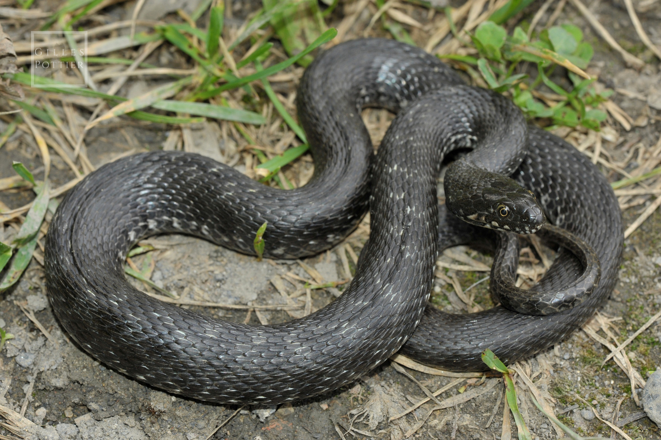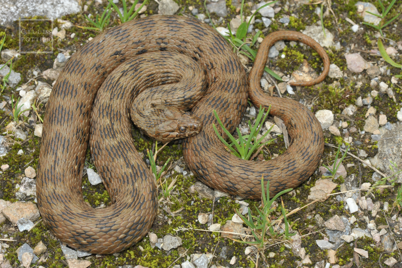 ATTENTION : la Coronelle lisse et la C. girondine (Coronella austriaca et C. girondica) passent souvent pour des "Couleuvres vipérines", car elles sont petites, discrètes, d'allure très vaguement "vipérine", peu souvent observées et très méconnues du grand public (nombreuses confusions constatées sur photo).C'est une couleuvre qu'on rencontre la plupart du temps près de l'eau ou dans l'eau, pour la simple et bonne raison qu'elle se nourrit essentiellement de poissons (secondairement, d'amphibiens ou de leurs larves). L'"Aspic d'eau" ou "Vipère d'eau", c'est elle ! Cependant, elle peut également être observée loin de l'eau, car ses sites d'hivernage ou de ponte se trouvent en zone non-inondable et sont donc parfois assez distants du lit majeur, dans le cas de fleuves ou de rivières sujets à des crues régulières.